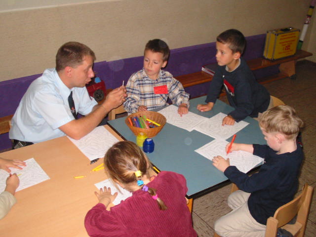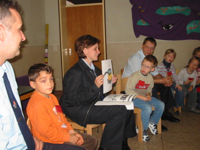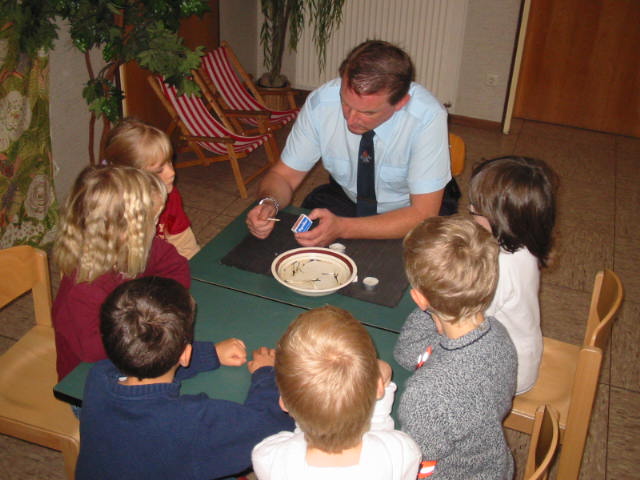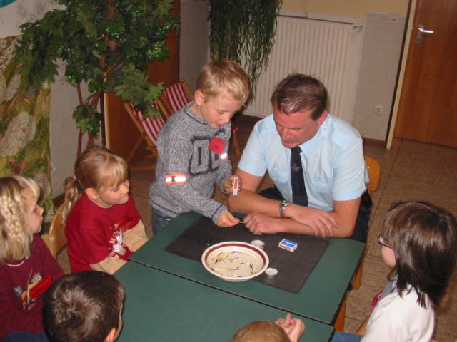 Jens zeigt den Kindern brauchbare und unbrauchbare Strechhölzer. |