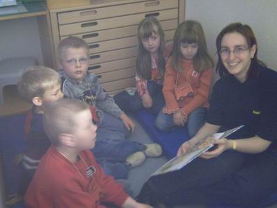 | Kirsten liest mit den Kindern eine Bilderbuchgeschichte. | |