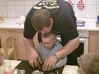 | Henning übt mit den Kids das richtige Anzünden einer Kerze. | |