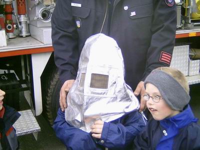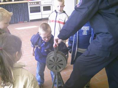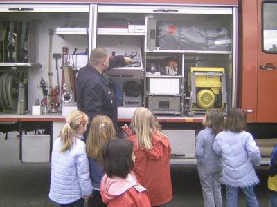 | Henning erklärt den Kindern die Ausrüstung. | |