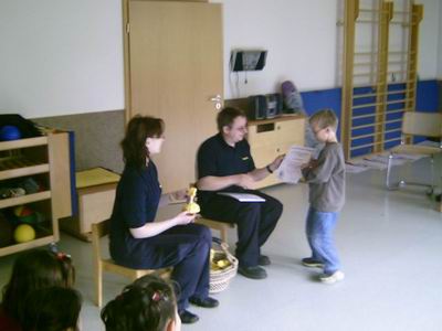 | Marcus und Kirsten überreichten die Urkunden und ein kleines Geschenk. |