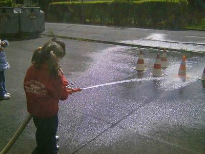 | Zielübungen mit dem Strahlrohr machen Spaß. | |