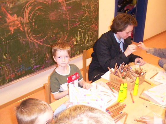 | Lars beim Ausmalen der brauchbaren Streichhölzer. | |