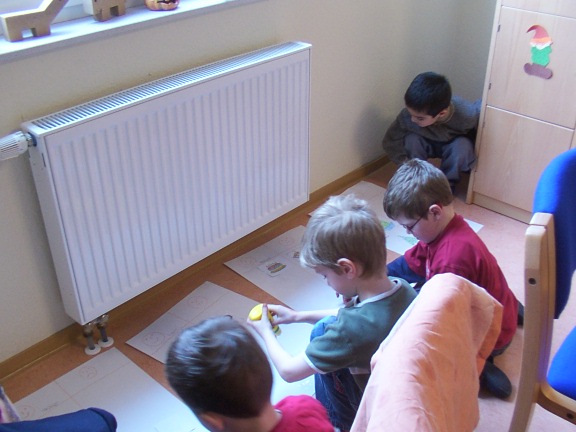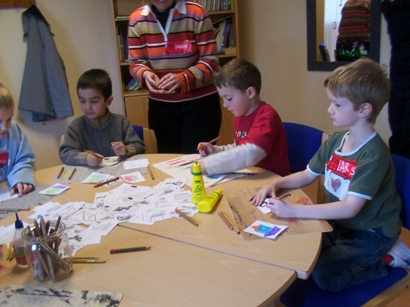 | Enes,Philipp und Lars beim Ausmalen der Doppelbilder... | |