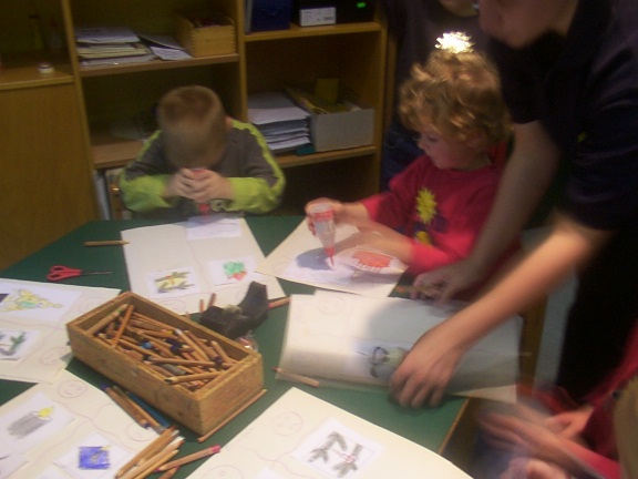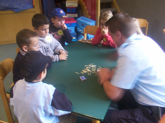 | Hier lernen die Kinder mit Uwe brauchbare von unbrauchbaren Streichhölzer zu unterscheiden. | |