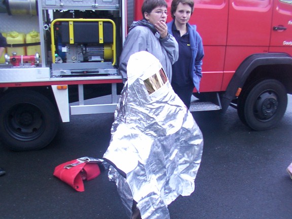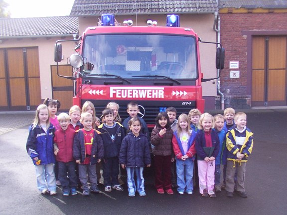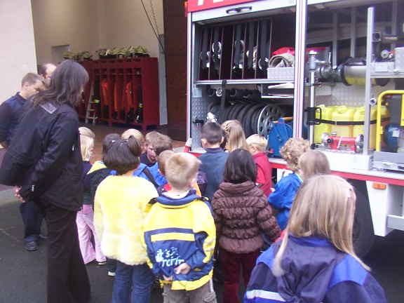 Die Kinder lernen mit Silvia die Aufgaben der Feuerwehr kennen.