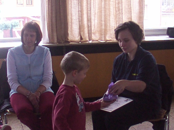 | Silvia überreicht die Urkunde und gibt den Kindern ein kleines Present. | |